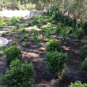 After receiving an updated survey the owners were notified that the previous owners of this property had over cleared based on property size and were asked to remove turf grass and non native species from several areas to comply with local ordinances. We were asked to re-establish an appropriate native planting in buffer areas as well as address appropriate native plantings in traditionally ornamental areas as well. The removal of sections of turf grass and replacement with native plants is a market trend that continues to grow in popularity. Native plantings can mean less fertilizers, less maintenance, and more beneficial habitat.