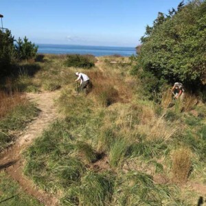 Long Island Natives was hired to consult on a seaside appropriate dunefront design and installation. The homeowners were eager to make the property naturally lush and species appropriate for the area. The proposed plan would need to be able to tolerate strong coastal conditions as well pressure from foraging deer inhabiting the area. A few of the species included in this project are Eastern Red Cedar, Bayberry, Beach Plum, Groundselbush, Hay Scented Fern, and Pennsylvania Sedge. The site features many types of native grasses including American Beach Grass, Switchgrass, Big and Little Bluestem, and Hairgrass. The owners embraced the naturally occurring vegetation as required by town ordinances and the result turned into a natural native coastal oasis.