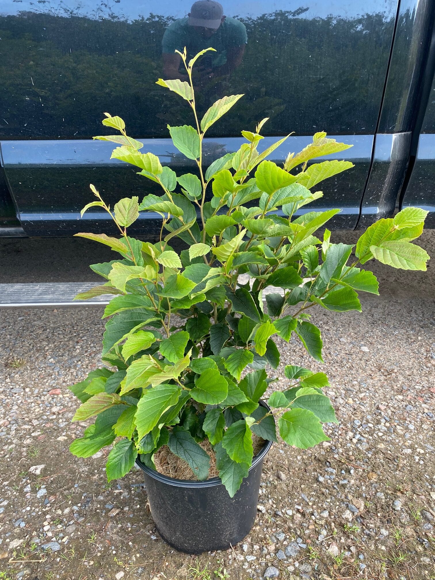 Hamamelis virginiana (American Witch Hazel) is a hardy native shrub known for its bright yellow, sweetly fragrant flowers that bloom in late fall when few other plants offer color. With its graceful, spreading form and attractive green foliage that turns golden in autumn, it brings multi-season interest to naturalized areas, woodland edges, and shade gardens. Adaptable and low-maintenance, this reliable shrub thrives in partial shade and moist, well-drained soils.